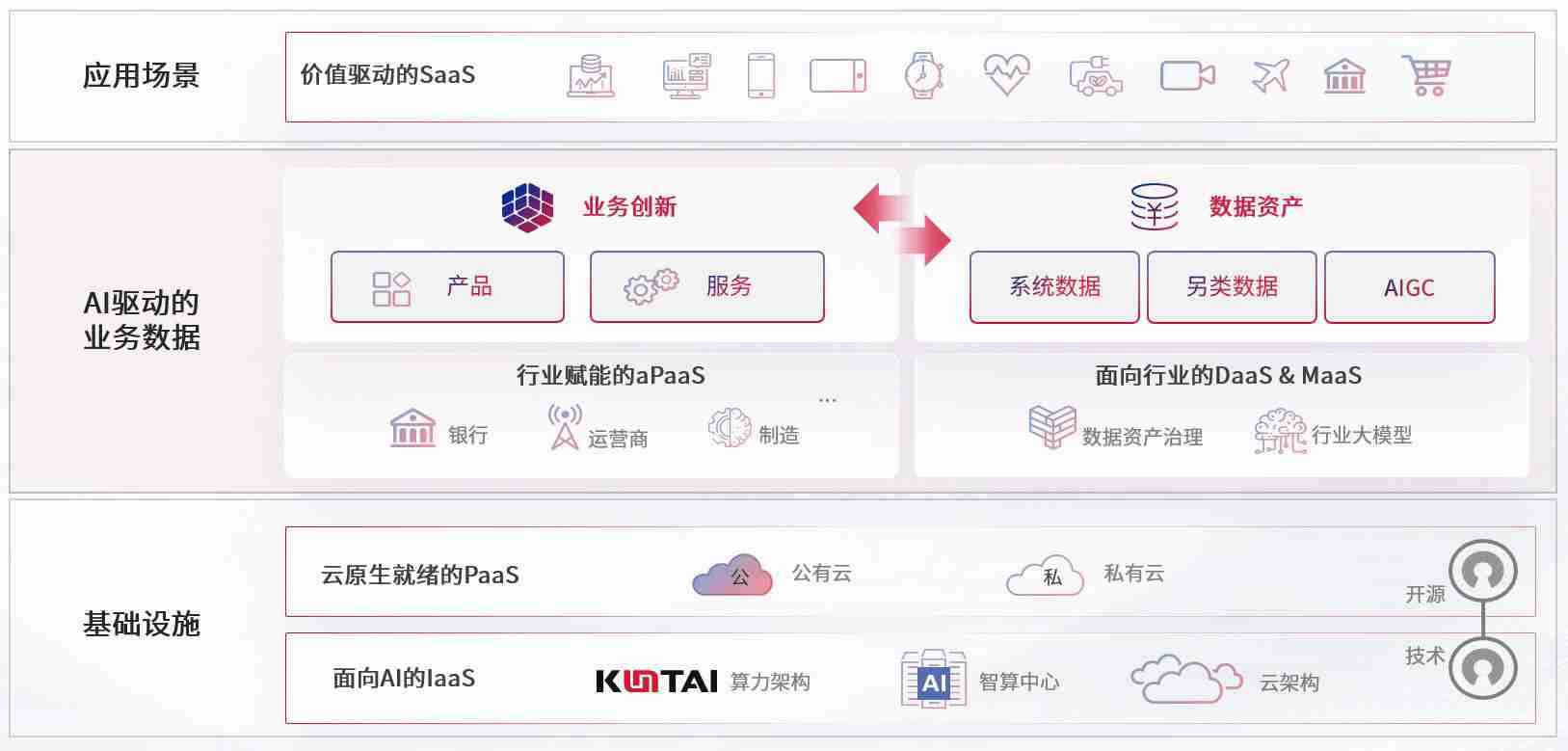 数字时代,,,,围绕企业数字化转型的关键要素,,,,壹号平台数码开创性的提出数云融合战略和技术体系框架,,着力在云原生、、数字原生、、AI原生和信创产业上架构产品和服务能力,,,,为处在不同数字化转型阶段的快消零售、、、汽车、、、、金融、、、、医疗、、、、政企、、、教育、、、、运营商等行业客户提供泛在的敏捷IT能力和融合的数据驱动能力,,,,构建跨界融合创新的数字业务场景和新业务模式,,,助力企业级客户建立面向未来的核心能力和竞争优势,,,,全面推动社会的数字化、、、智能化转型升级。。。。